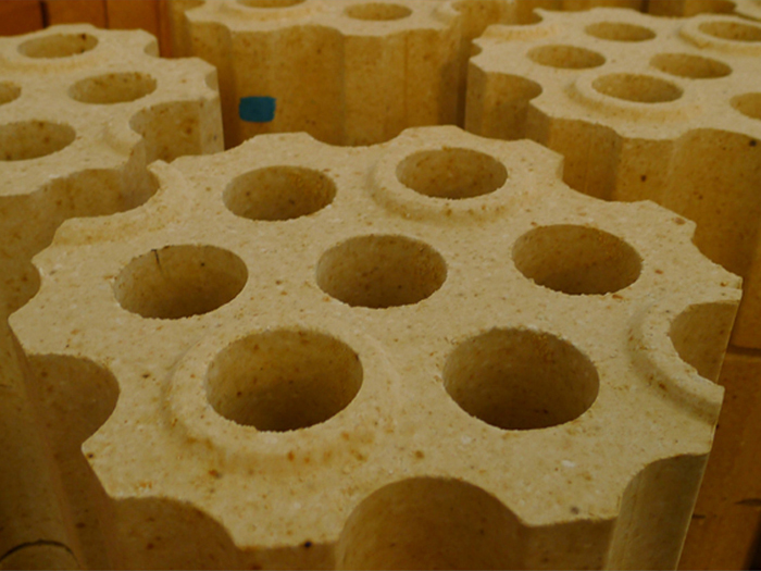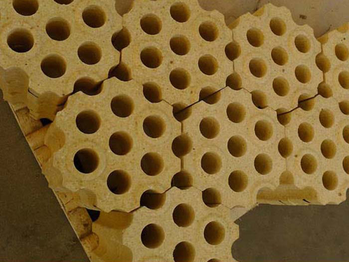 高鋁孔磚具有體積穩(wěn)定性好,高溫荷重蠕變性能良,高密度低氣孔率等點。熱風(fēng)爐孔磚的用途:孔磚主要用在熱風(fēng)爐上,當(dāng)熱風(fēng)低于900℃時,一般選用粘土磚;當(dāng)風(fēng)溫高于900℃時,孔磚則采用高鋁磚、莫來石磚、硅線石磚和硅磚等。