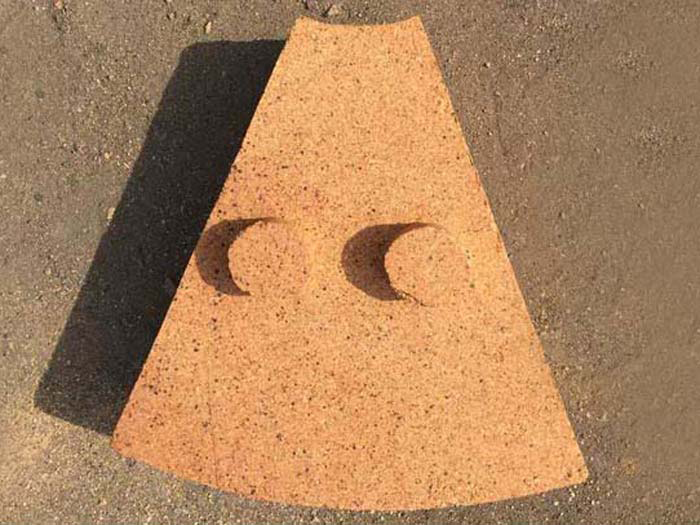 粘土質(zhì)扇形耐火磚是為防止內(nèi)襯環(huán)形砌磚用磚在其長期轉(zhuǎn)動(dòng)中因松動(dòng)而抽沉、脫落甚至掉落,而將筒體同心圓環(huán)柱體內(nèi)襯分割成若干個(gè)形狀尺寸相同的部分,每個(gè)部分即為扇形耐火磚。